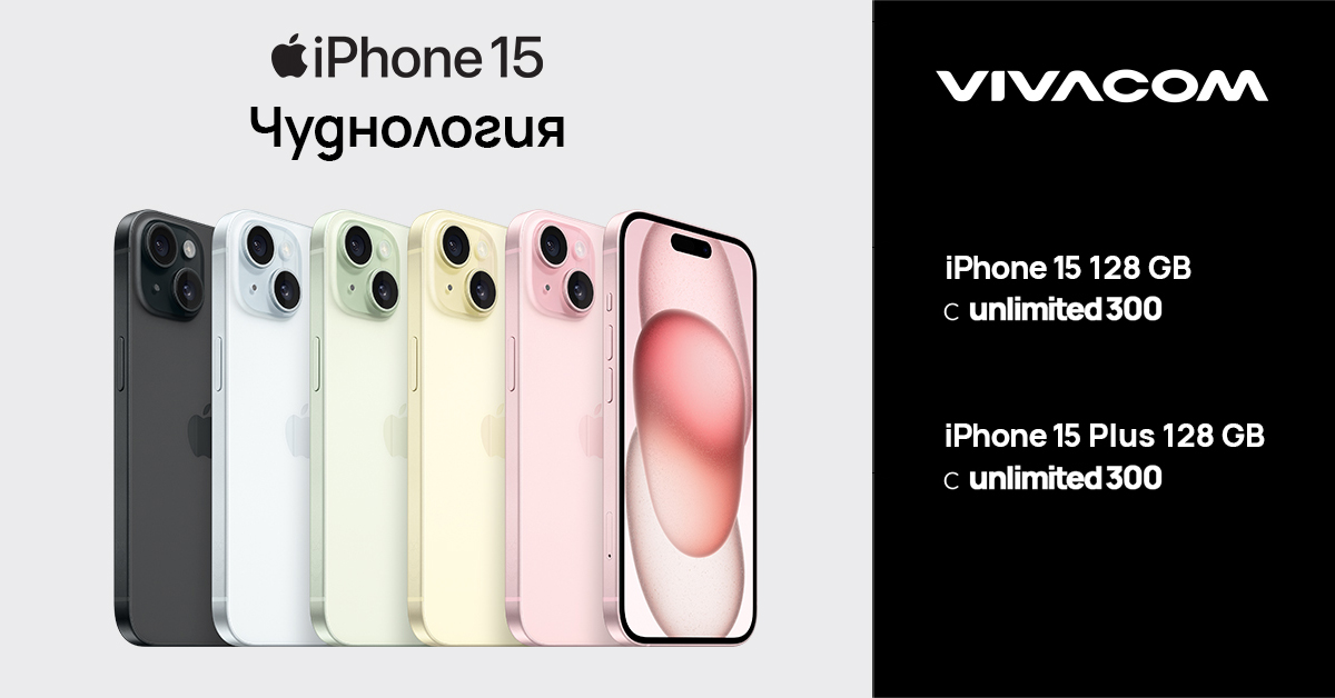 iPhone 15 и iPhone 15 Plus са достъпни в пет цвята – зелен, черен, жълт, розов, син, а клиентите на Vivacom, ползващи някои от новите модели на Apple, могат да се възползват от услугата VoWiFi, с която лесно и удобно да осъществяват разговори чрез WiFi мрежа без допълнителни такси.