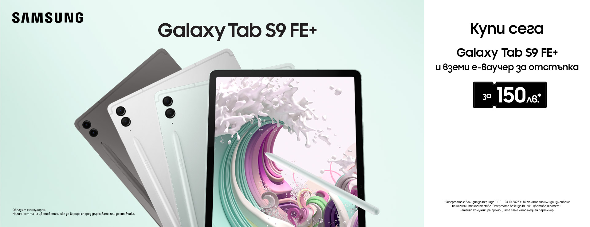 Vivacom ще зарадва всички почитатели на Samsung с изгодни предложения за най-новия таблет от серията Fan Edition (FE) – Galaxy Tab S9 FE+, броени дни след официалното му представяне. До 24 октомври телекомът ще приема поръчки за хитовия модел в онлайн магазина си, като клиентите могат да се възползват от специална отстъпка в размер на 150 лв. при заявка в рамките на промоционалната кампания. Vivacom ще предложи устройството в две конфигурации с памет и три цвята – сиво, светлозелено и светлорозово.