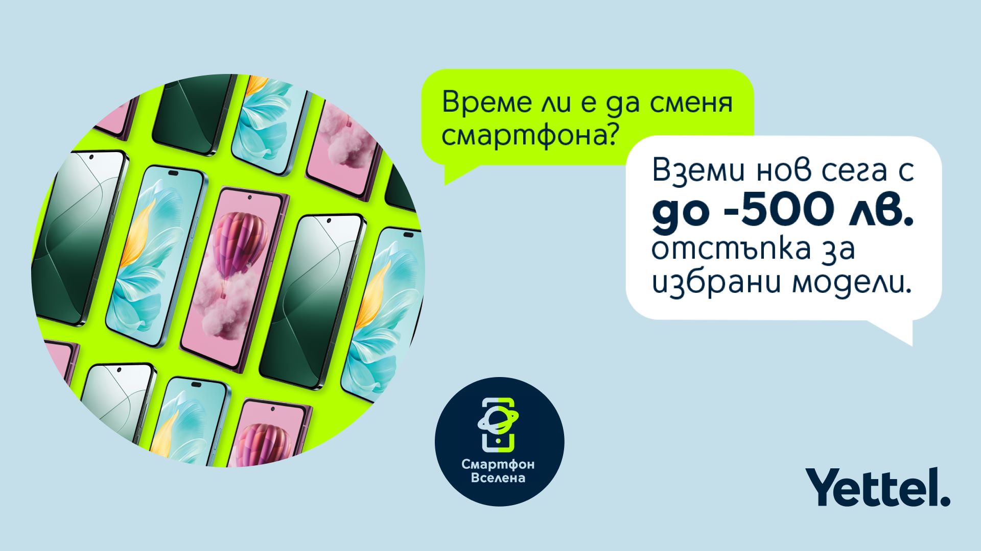 По случай старта на новата учебна година Yettel предлага специална промоция на редица впечатляващи смарт устройства с намаления, достигащи до 500 лв. В промоцията участват телефони, смарт часовници, лаптопи и таблети на производители като Apple, Samsung, Lenovo, Motorola, Huawei, на преференциални цени и с опции за разсрочено плащане. Те могат да бъдат закупени онлайн или във физическите магазини на Yettel.